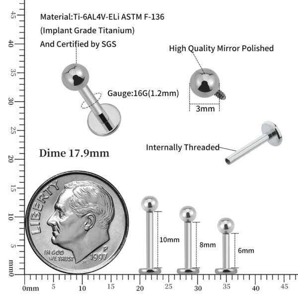 Labret em esfera ideal para perfurações em processo de cicatrização, maior comodidade durante a profilaxia da região aplicada